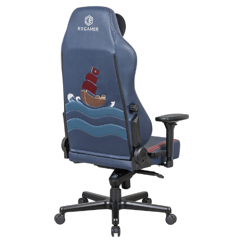 Una dintre caracteristicile remarcabile ale RXGAMER RX-2164 este construcția sa cu mai multe țesături. Scaunul combină țesături amestecate de albastru intens, roșu vin și maro, care nu sunt doar uimitoare din punct de vedere vizual, dar oferă și durabilitate și confort excelente. Folosirea țesăturii neamestecate de culoare albastru deschis cu broderie din piele pe spate adaugă o notă de eleganță, în timp ce țesăturile negre din piele intoarsa și catifea de pe panourile laterale și din spate asigură o senzație premium.