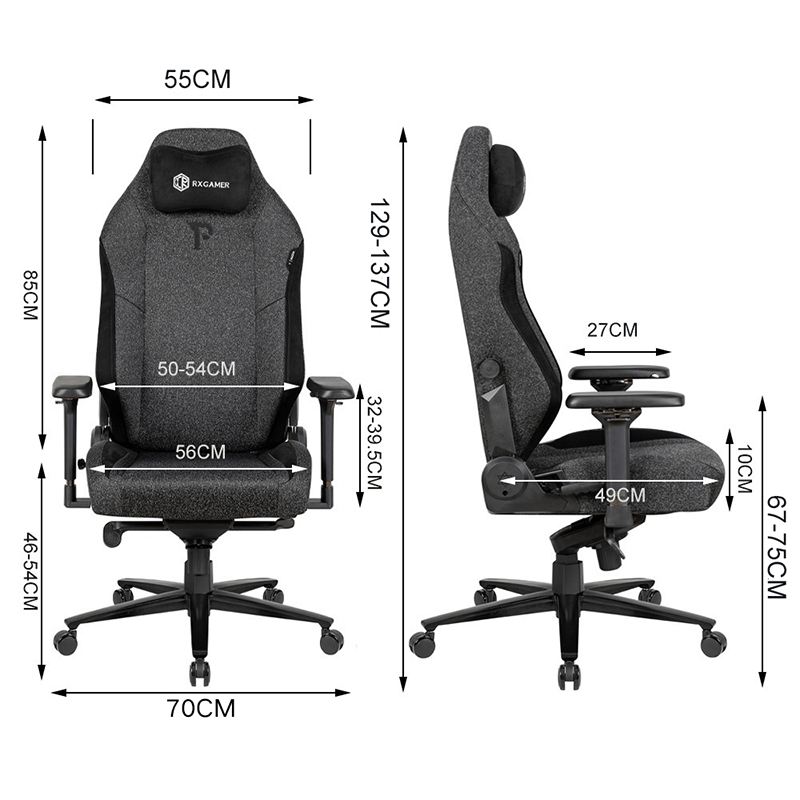 Acasă / Scaune pentru jocuri / RXGAMER RX-2070-1R-A Scaun de e-sport rotativ pentru șef de birou administrativ cu plasă neagră